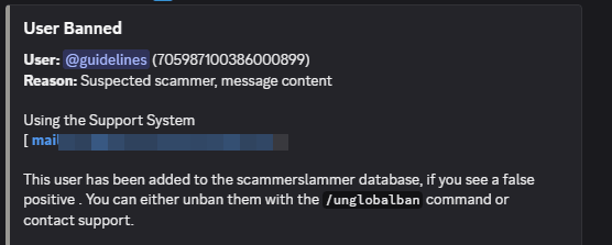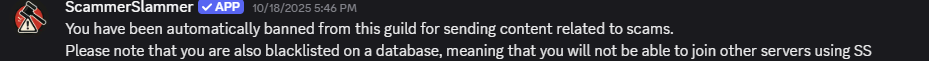 At this stage, the user is banned across the entire network of servers using the bot. If they try to join any other server with the Scammerslammer bot, they will be automatically banned again, keeping them from joining these communities.